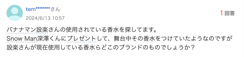 ヤフー知恵袋によると、深澤くんの香水は設楽さんからプレゼントしてもらった物のようです!