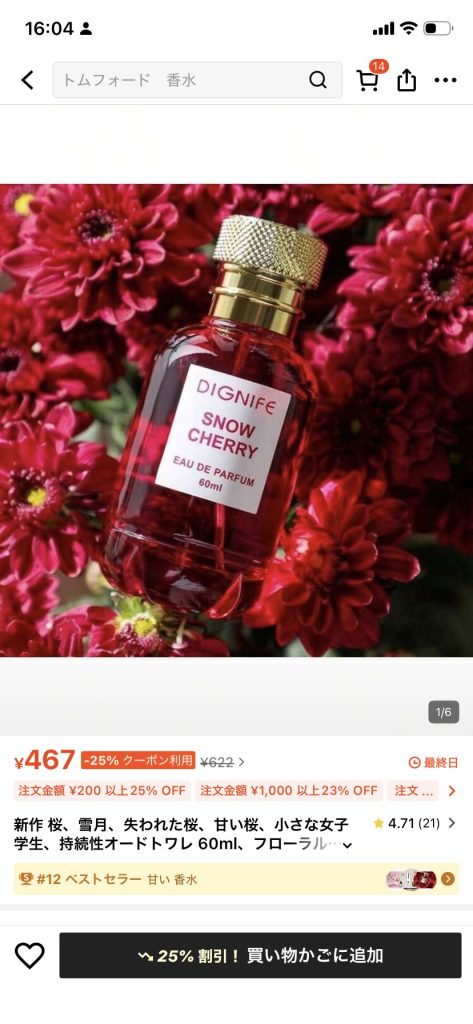 Temuの調査を進める中で、もう一つ気になる情報をキャッチしました。同じく激安サイトの「SHEIN(シーイン)」で「ロストチェリー 香水」と検索すると、「スノウチェリー」という商品が出てきます。