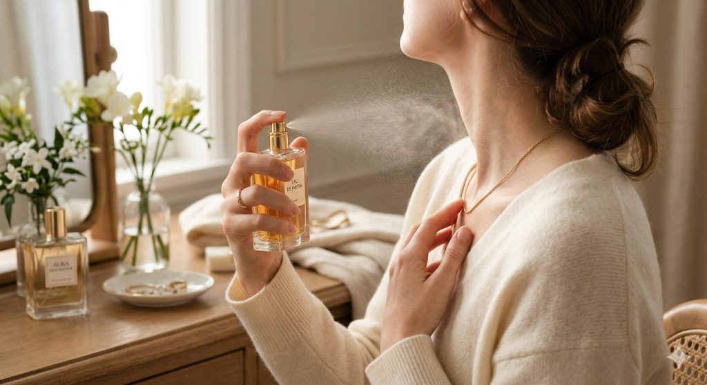 これにより、特定の場所だけが強く香るのを防ぎ、動くたびに「ふんわりと全身から匂い立つ」ような、自然な演出が可能になります。